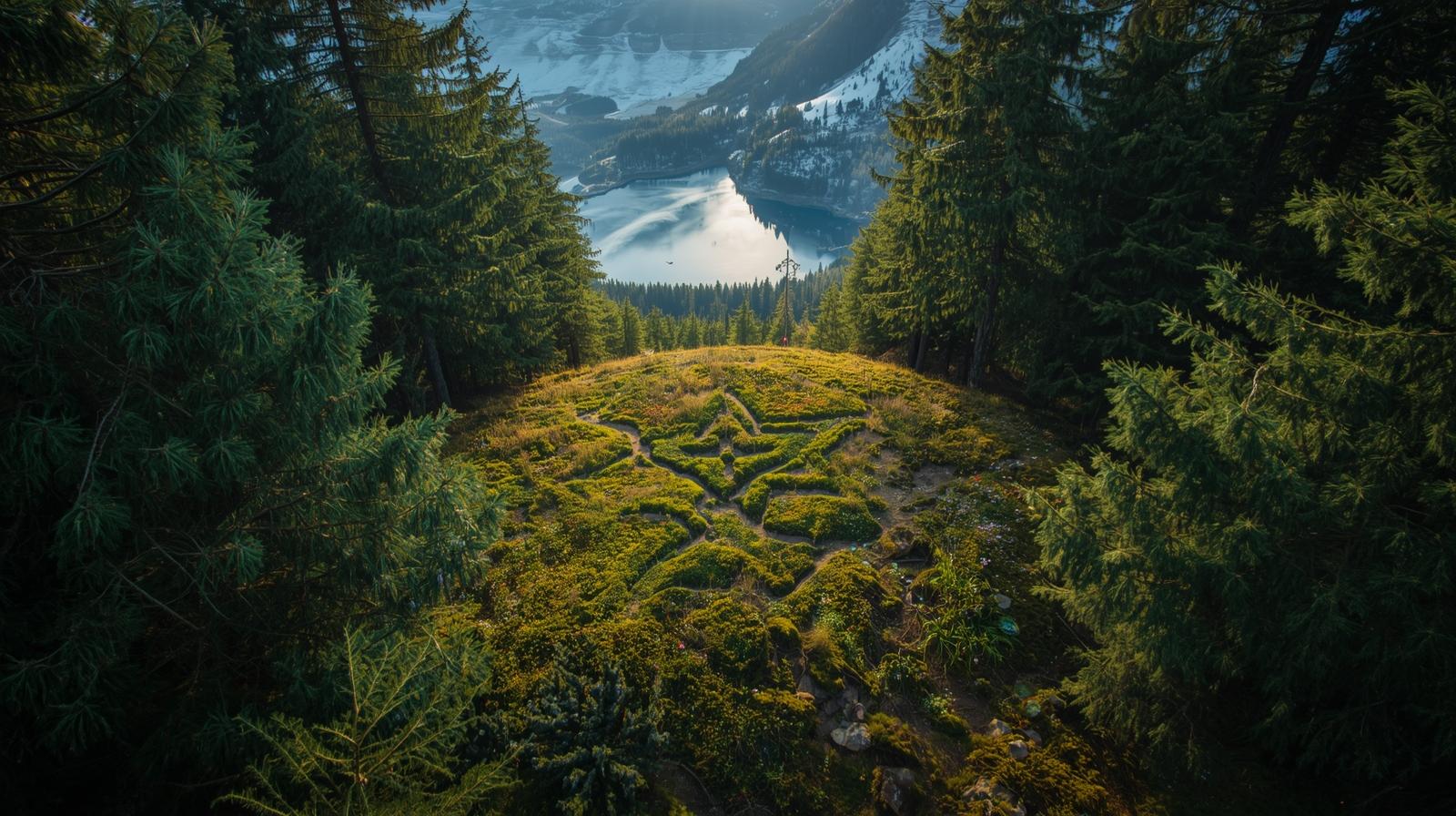 Der Naturfriedhof Markt Wald liegt oberhalb des Ortsteils Schnerzhofen im schönen Unterallgäu – ein friedvoller Standort, an dem Licht durch die Baumkronen der Nadelbäume fällt und der Blick sich auf den Schnerzhofer Weiher und das beeindruckende Alpenpanorama öffnet. Die Kombination aus ruhiger Waldatmosphäre und der weiten Aussicht über die Berge macht diesen Naturfriedhof zu einem besonderen Platz für eine würdevolle Waldbestattung inmitten der Natur. Der zentral gelegene Andachtsplatz bildet das Herzstück des Geländes; von hier aus verzweigen sich die Wege sternförmig zu den einzelnen Bestattungsbäumen und Grabstätten.